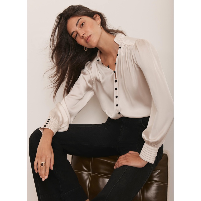 APTG13088307Cream Contrast Satin Blouse XS