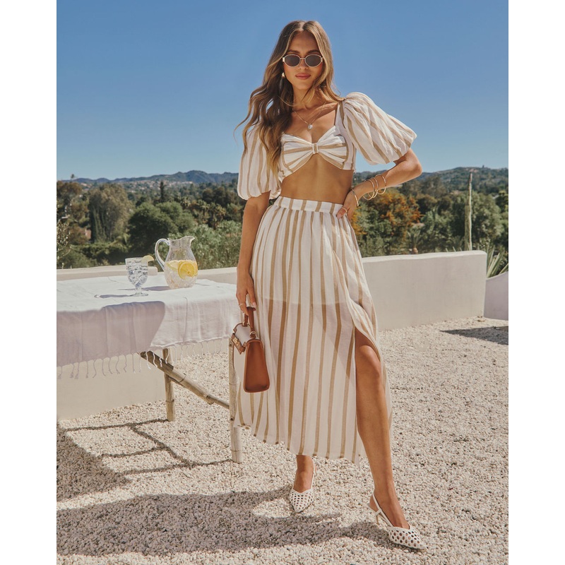 Say hello to effortless style with the Ginnavive Stripe Midi Skirt. Made from lightweight linen, this skirt captures the breezy elegance of a Euro summer getaway. The side slant pockets add a chic touch of practicality, while the flattering midi length ele