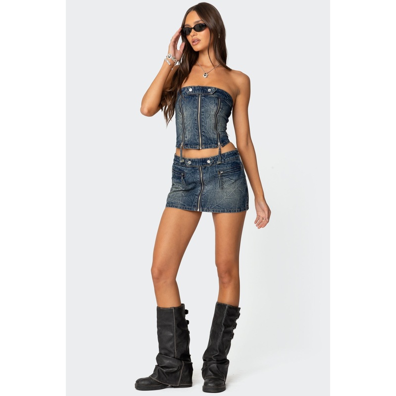 Guinevere Zip Washed Denim Mini Skirt BLUE WASHED XS