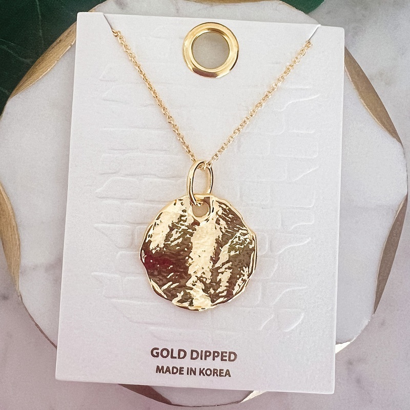 Gold dippedGold coin pendant on dainty chainNickel and lead compliantStyle #: N-1415Wed love to see you at one of our three Nebraska locations!The 308 Boutique - Holdrege320 West AvenueHoldrege, NE 68949308-999-9020The 308 Boutique - Elkhorn725 N. 210th St