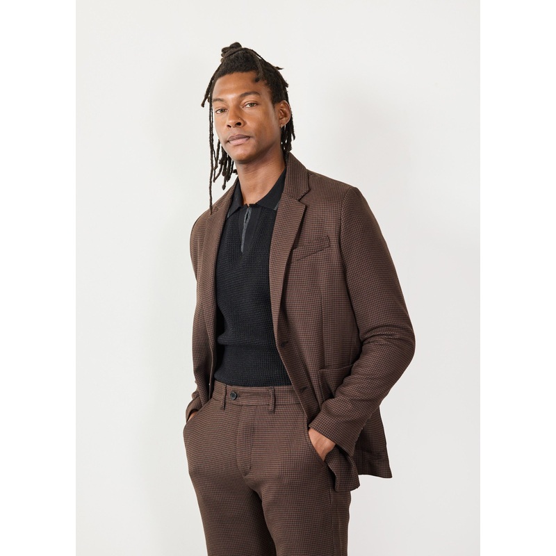 Winter, dressing up to get down. Wear a suit, you will feel good. Full co-ord houndstooth suit, matching trouser (it is a suit) and cap for good measure. Cut in the classic one fit suits most, fit, this houndstooth is subtle enough to nod to quiet luxury a