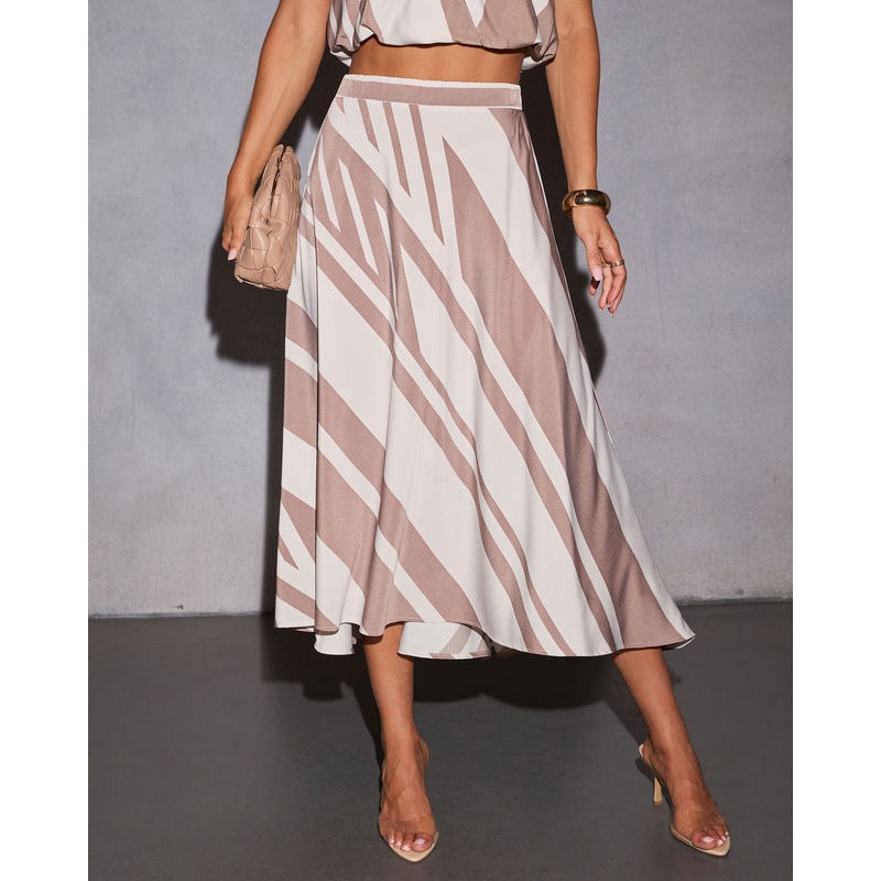 Meet the Kinara Midi Skirt, the easy statement piece your closets been waiting for. With its fluid crepe satin and bold abstract stripe design, this skirt brings just the right amount of drama without trying too hard. The elastic waistband keeps things com