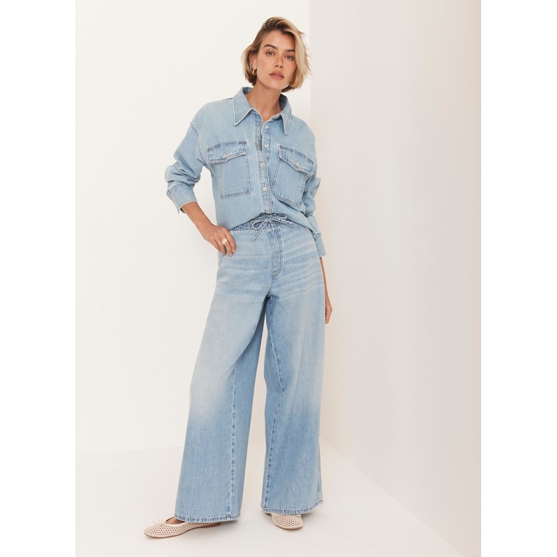 Light Indigo Wide Leg Tie Waist Jeans 06 Short