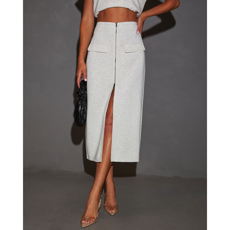 Luxe Lifestyle Front Zip Midi Skirt Heather Grey S