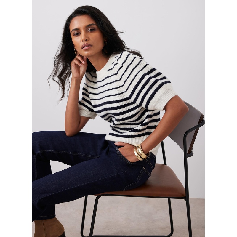 APTG13088571Navy Striped Puff Sleeve Knit Top XS