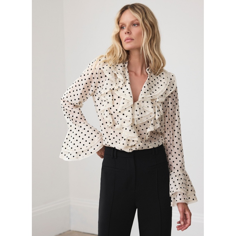 APTG13087973Neutral Polka Dot Ruffle Blouse XS