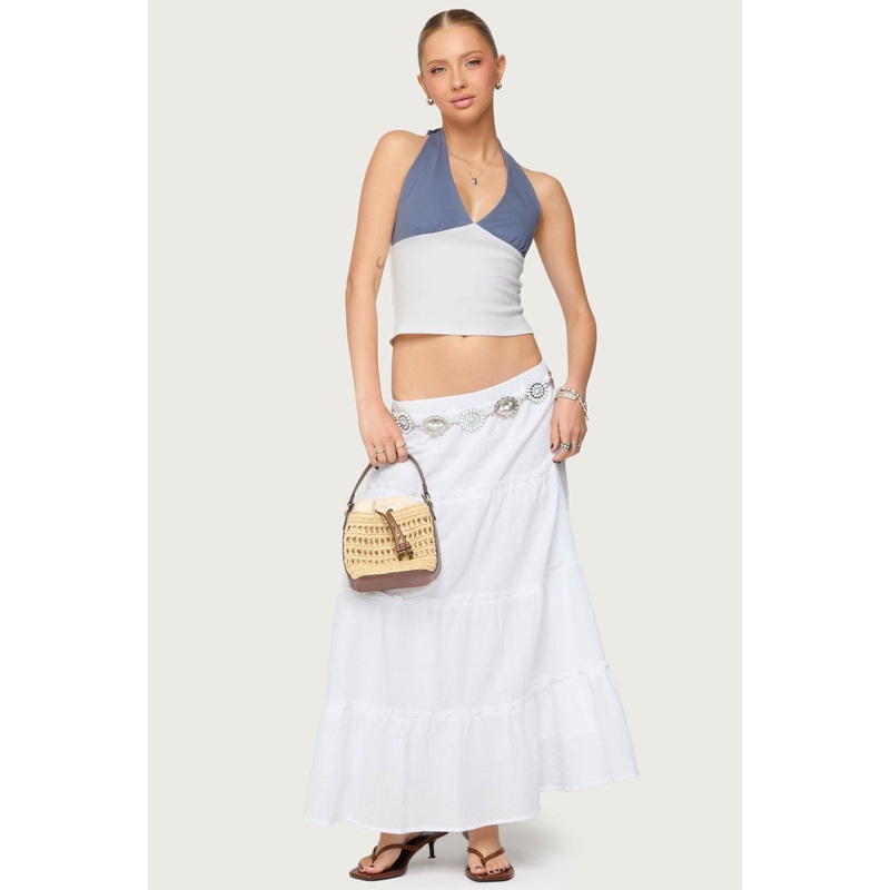 Petite Charlotte Tiered Maxi Skirt WHITE XS
